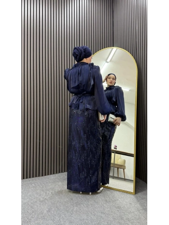 Lacivert Uzun Etek İkili Kombin