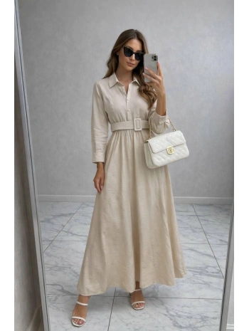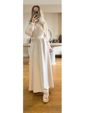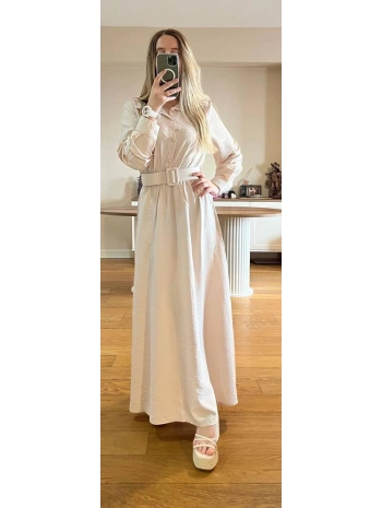 Bej Modal Kumaş Beli Lastikli Kemerli Elbise Modelimiz