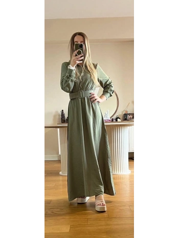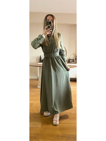 Yeşil Modal Kumaş Beli Lastikli Kemerli Elbise Modelimiz