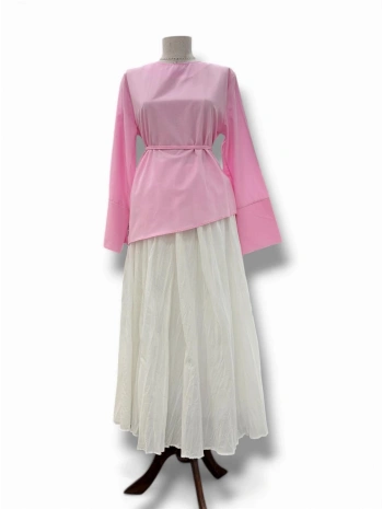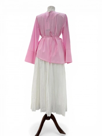 Pembe Poplin Kumaş Belden Bağlamalı Gömlek Modelimiz