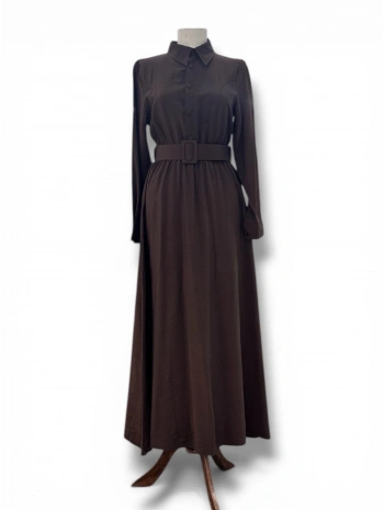 Kahve Rengi Modal Kumaş Belden Lastikli Kemerli Elbise Modelimiz