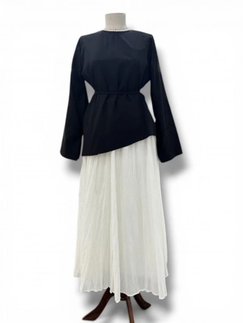 Siyah Beli Lastikli Kırışık Etek Modelimiz