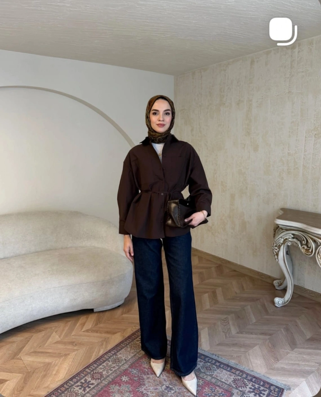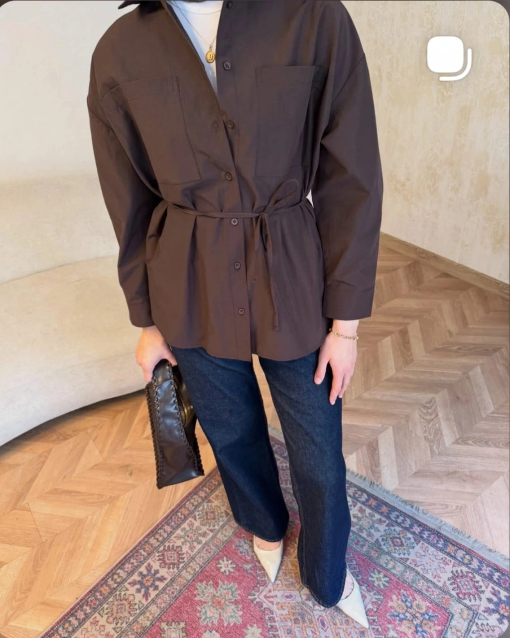 Acı Kahve Belden Bağlamalı Basic Gömlek