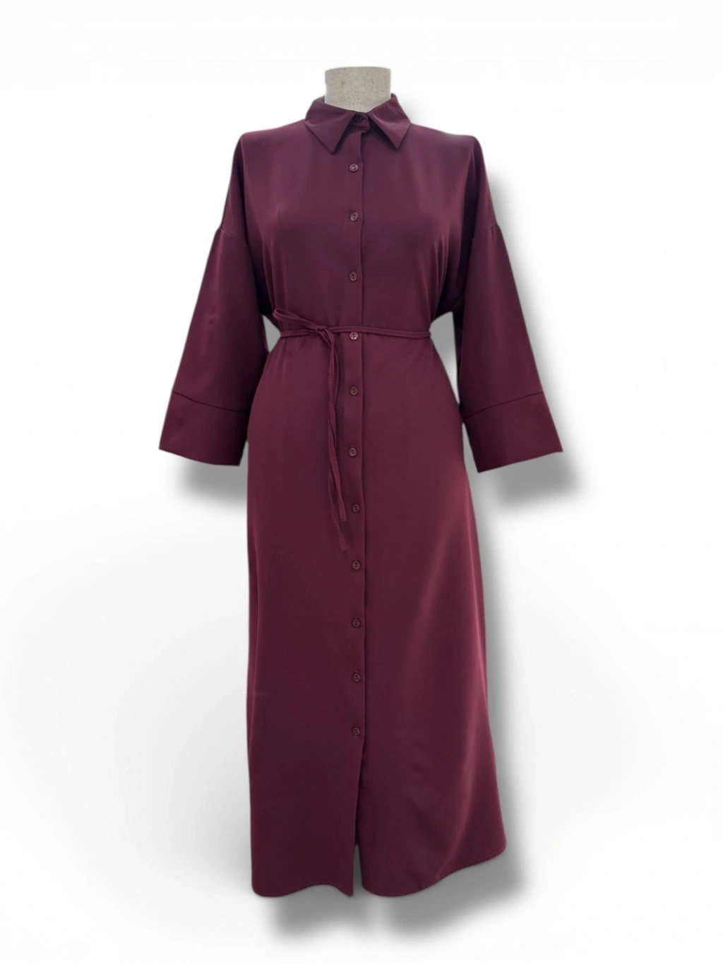 Bordo Double Kumaş Önü Düğmeli Elbise Modelimiz
