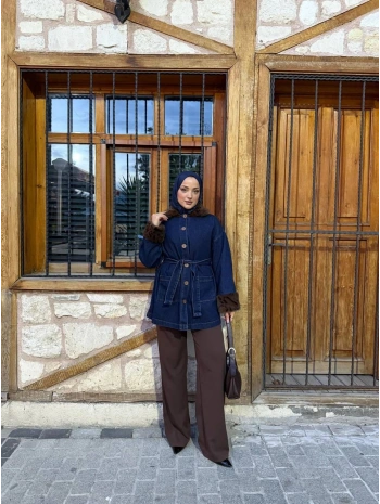 Leopar Detaylı Kot Ceket Modelimiz