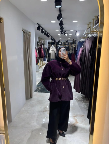 Mor Kemerli Kışlık Kadın Ceket – Yeni Sezon