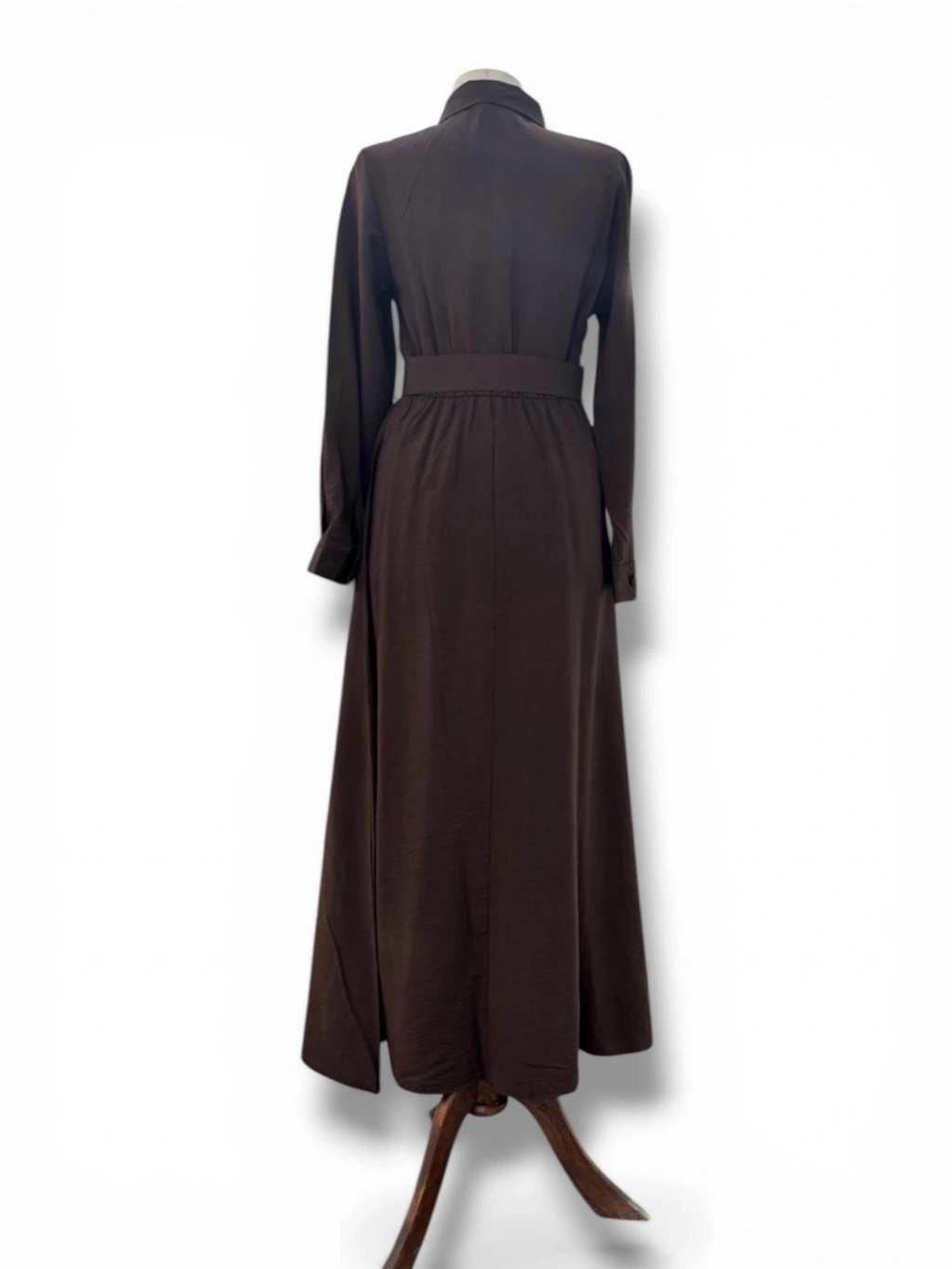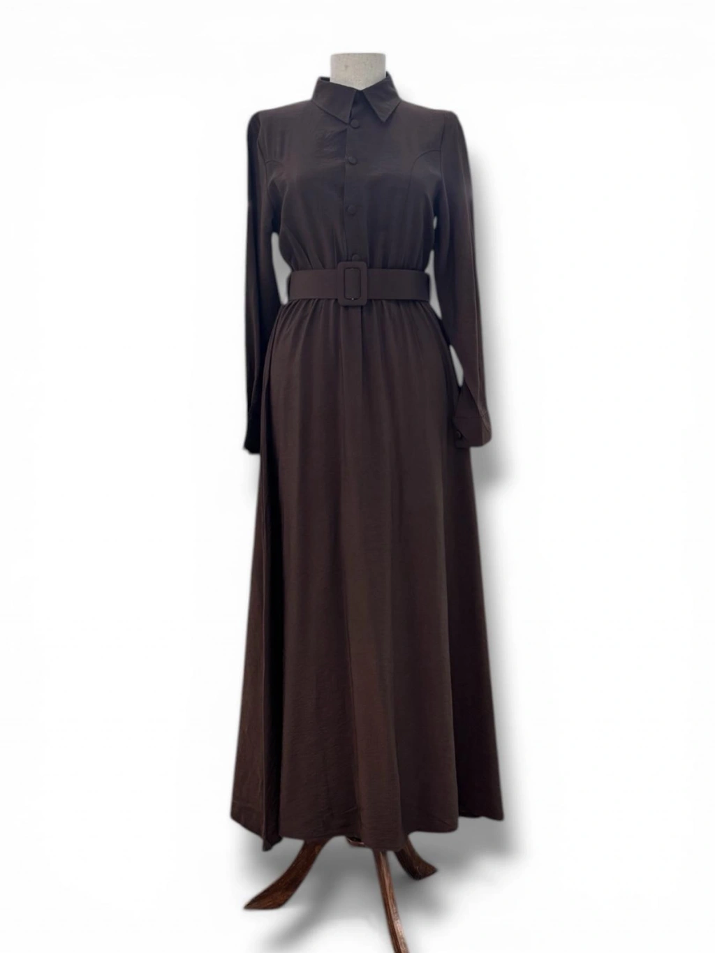 Kahve Rengi Modal Kumaş Belden Lastikli Kemerli Elbise Modelimiz