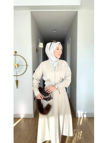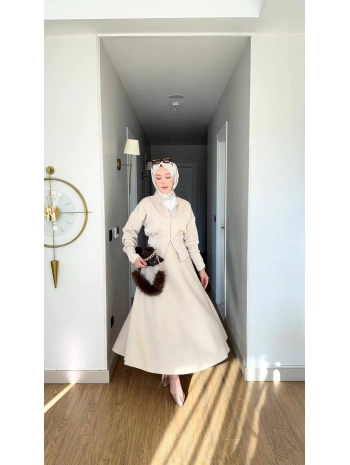 Bej Atkılı Kışlık Kadın Ceket – Yeni Sezon