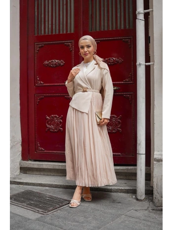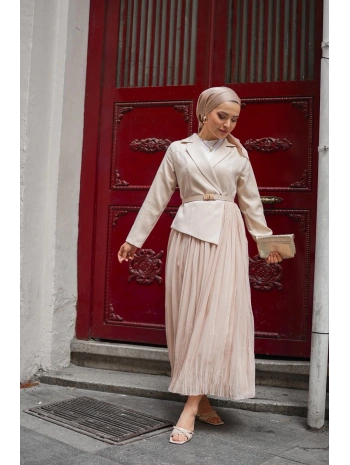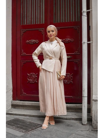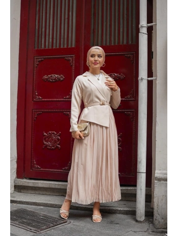 bej double şifon elbise