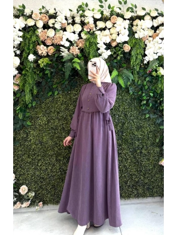 Sukuba Kumaş Kahverengi Tesettür Elbise | Şık Günlük ve Özel Gün Elbisesi |
