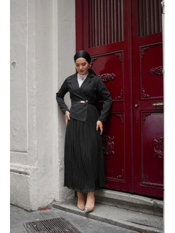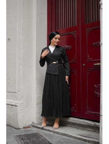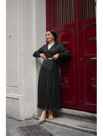 siyah double şifon elbise