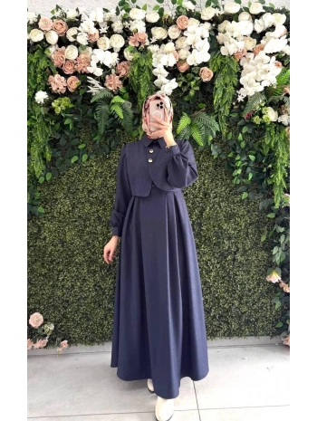 Lacivert yuniceft kumaş elbisemiz