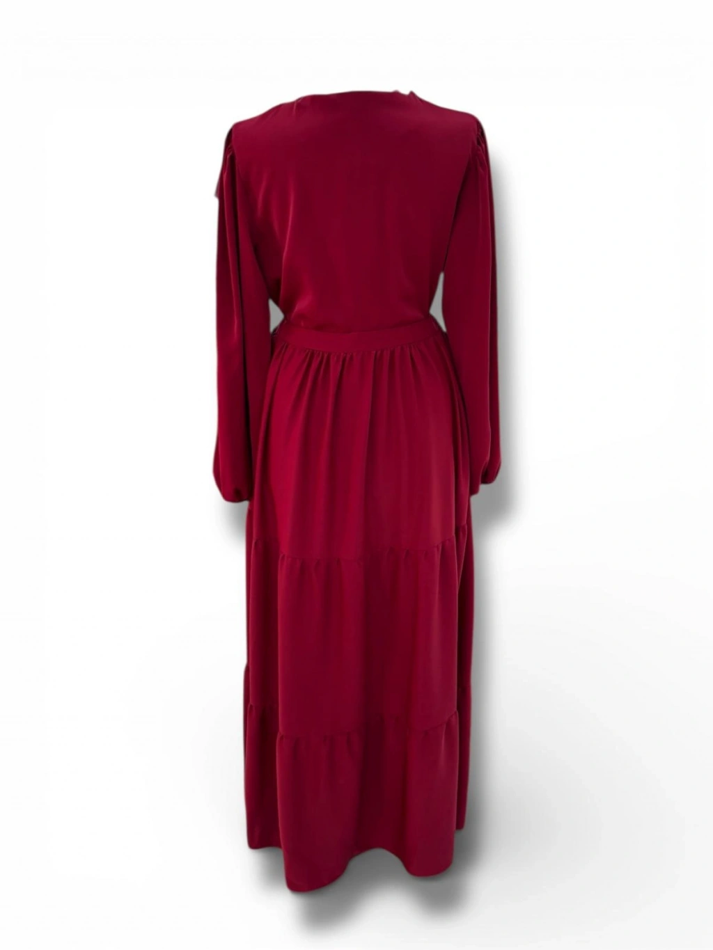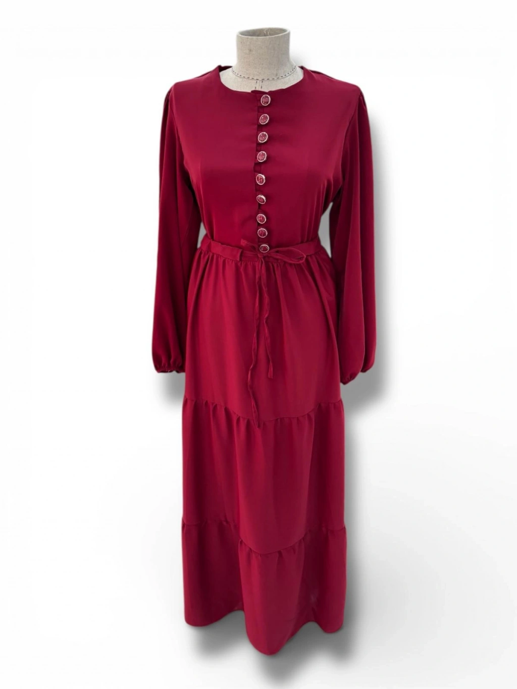 Kırmızı Belden Bağlamalı İnce Saten Kumaş Elbise Modelimiz