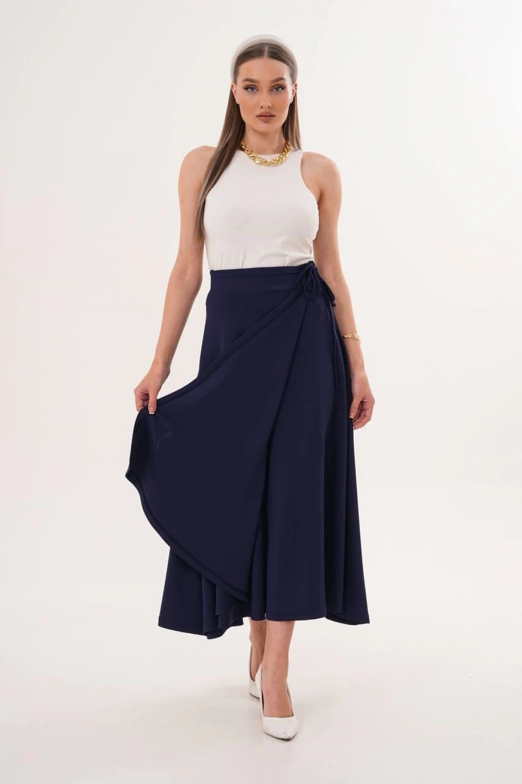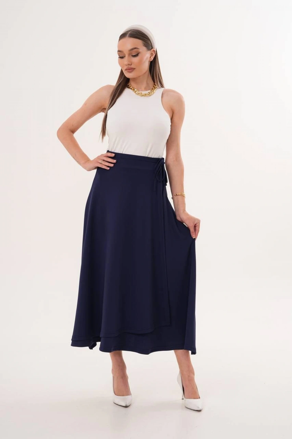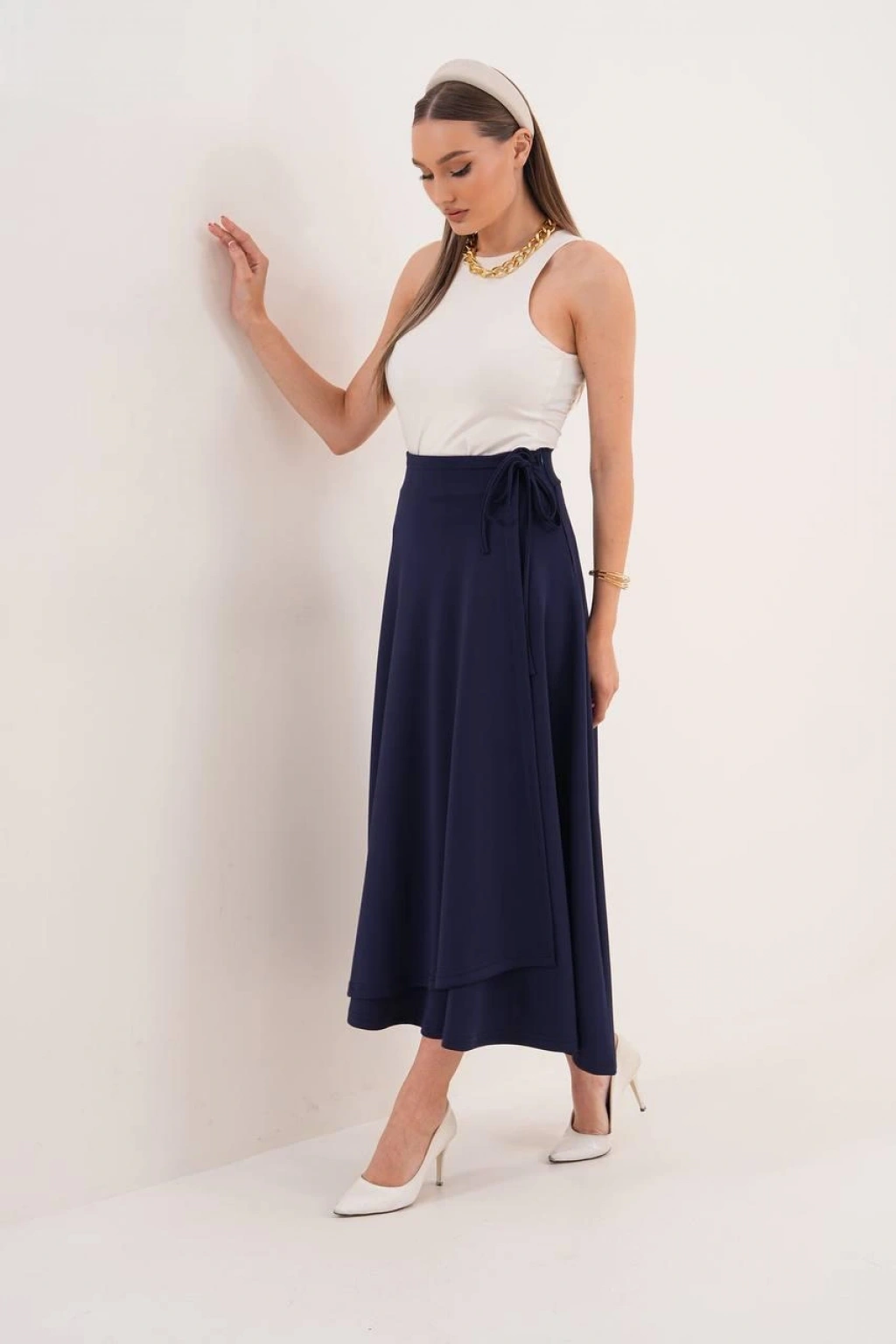Lacivert Yandan Bağlama Detaylı Etek Modelimiz