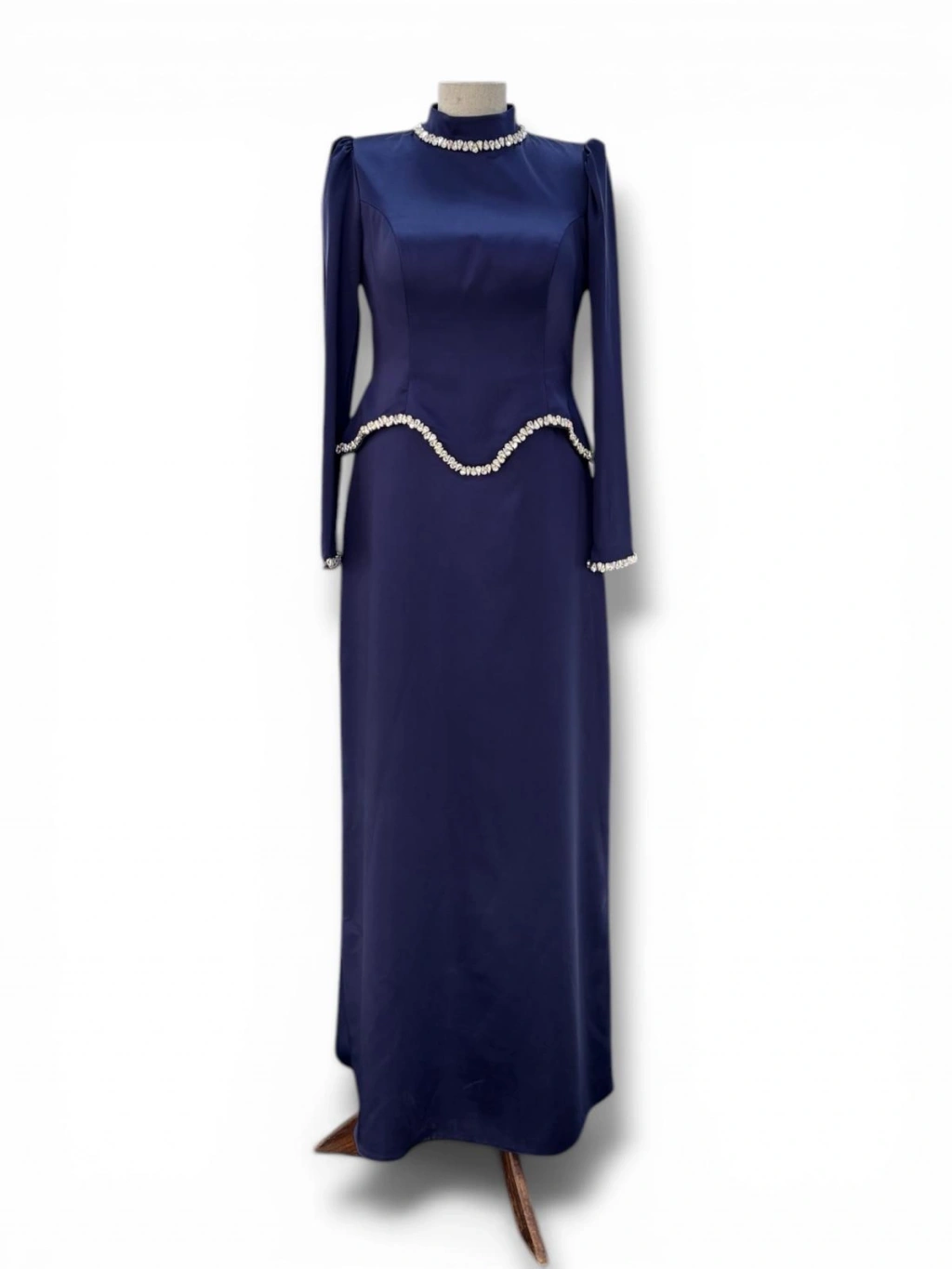 LacivertSaten Kumaş Taşlı Abiye Modelimiz