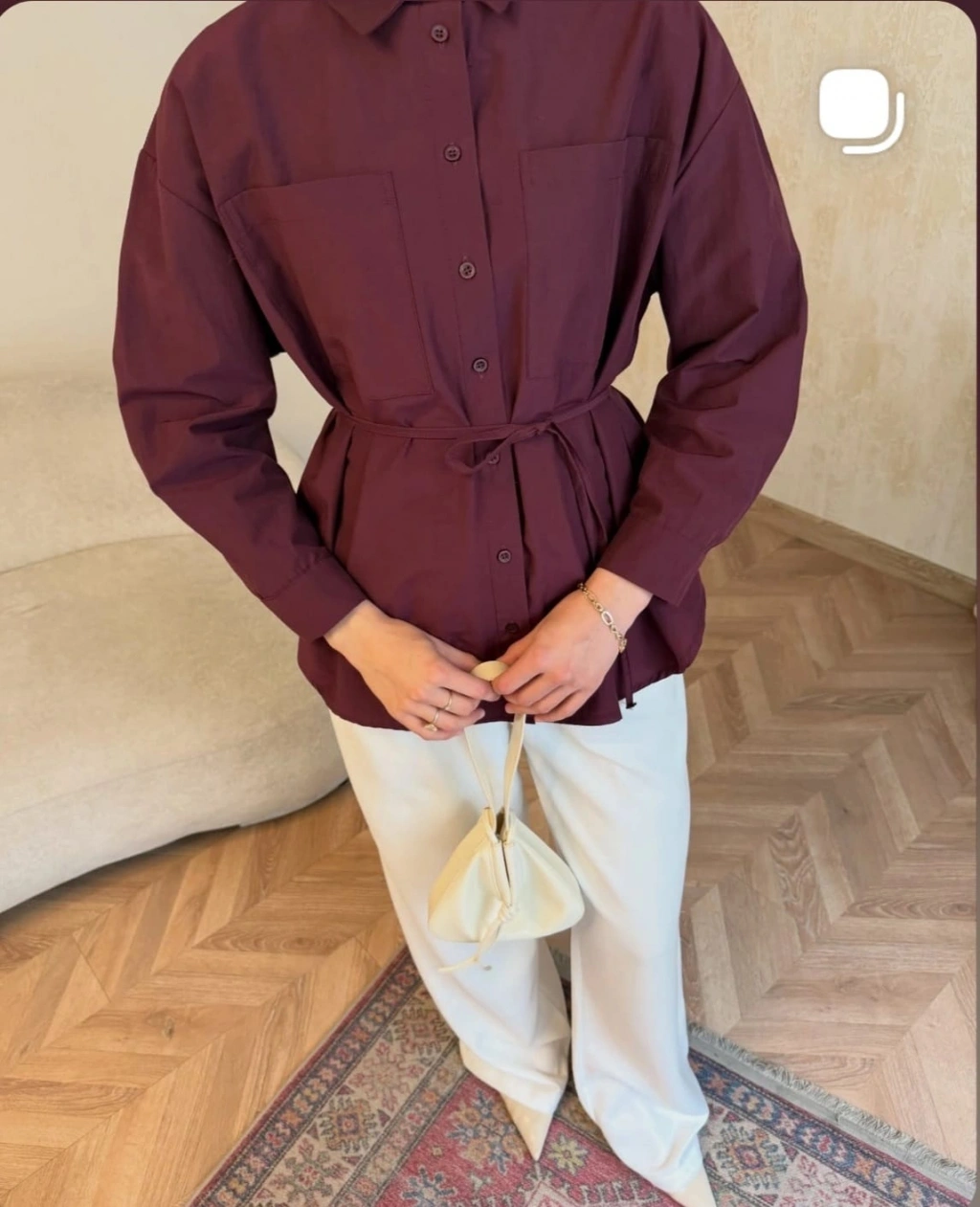 Mürdüm Belden Bağlamalı Basic Gömlek Modelimiz