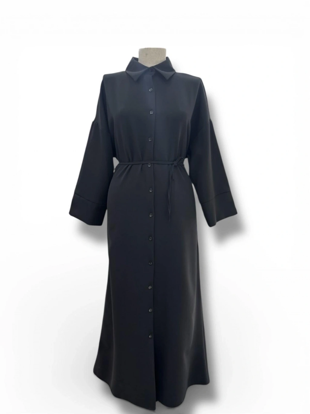 Siyah Double Kumaş Önü Düğmeli Elbise Modelimiz