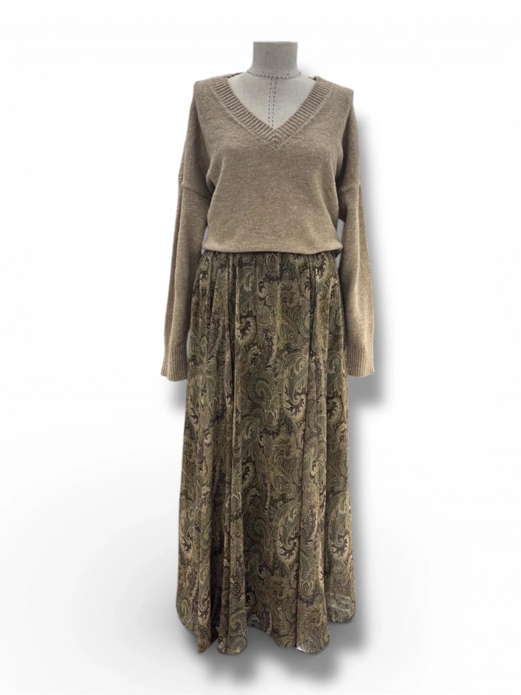 Sütlü Kahve Şal Desenli Şifon Etek Modelimiz