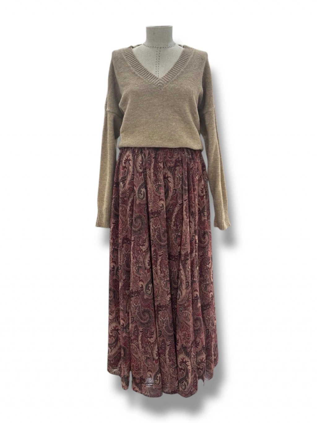 Vişne Çürüğü Şal Desenli Şifon Etek Modelimiz